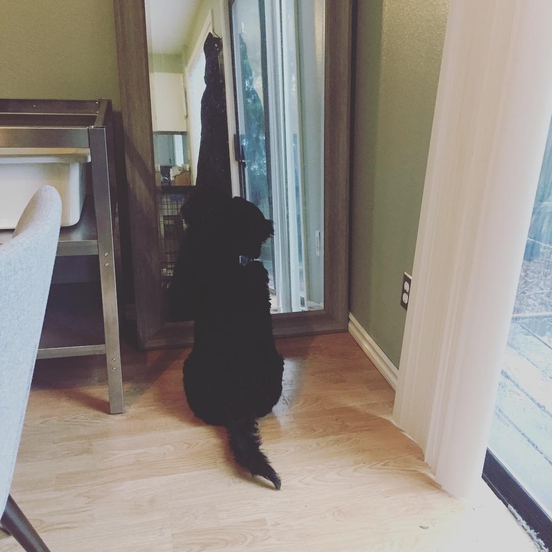 I swear to god, she is just staring at herself.