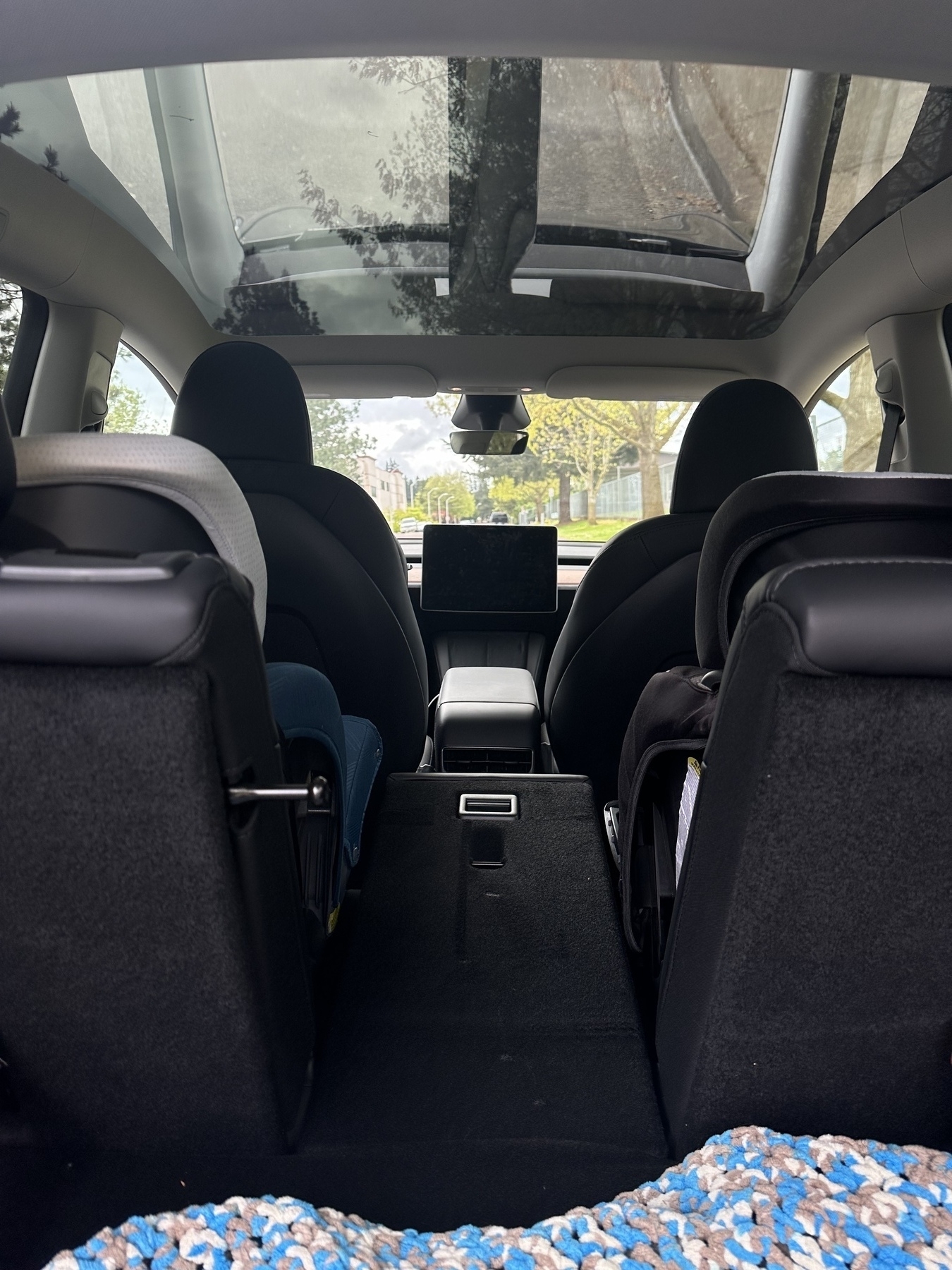 One very simple but thoughtful thing about the new car is that the center backrest folds down. As a parent of two young kids in car seats, this is very convenient! Can’t even tell you how many times I’ve had to take out a car seat just to make a run to the hardware store for some moulding or lumber.