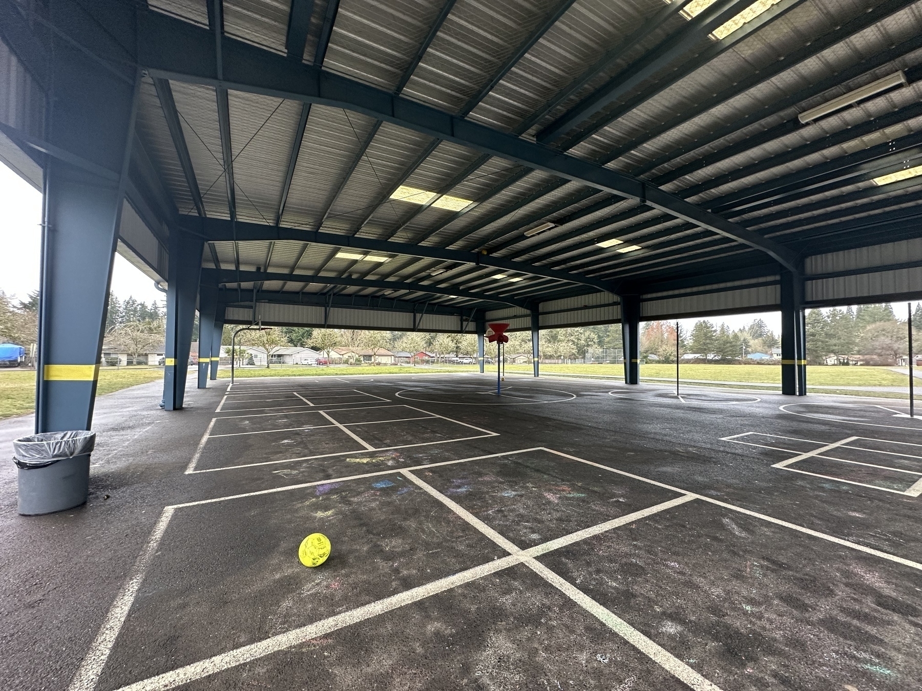 Back to 2025 February 19, 2025 at 6:26 AM Many of the school playgrounds in Oregon have these structures so kids can stay dry in the winter. I needed some exercise so I spent about 30 minutes getting some of the stuck balls down from the rafters.